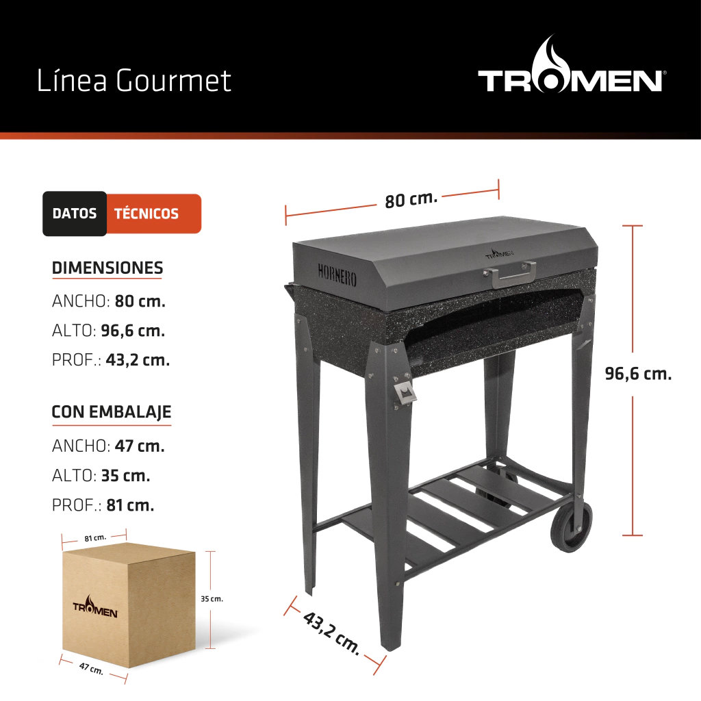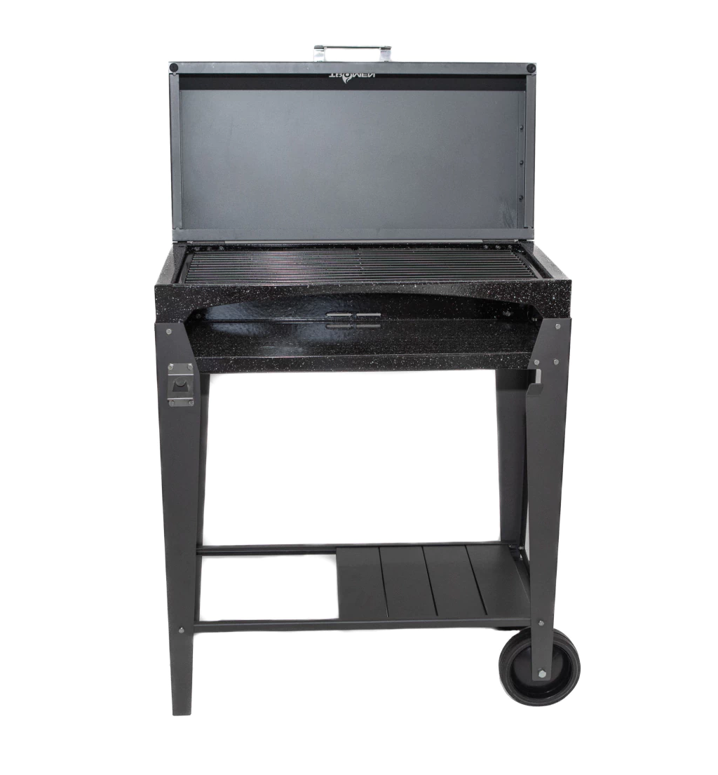 Incorpora ruedas en el lateral derecho para facilitar su movilidad y una tapa que permite un control óptimo de la cocción. ¡Convierte tus asados en una experiencia inolvidable!